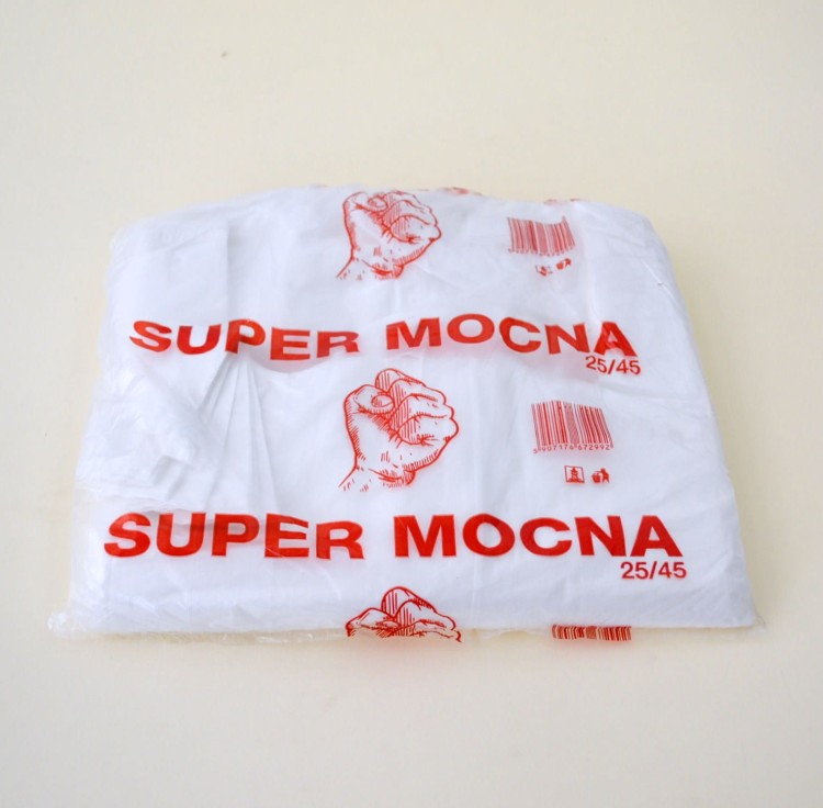 Reklamówka typu koszulka z folii hdpe o wymiarach 25x45 cm biała, wytrzymałość 5 kg