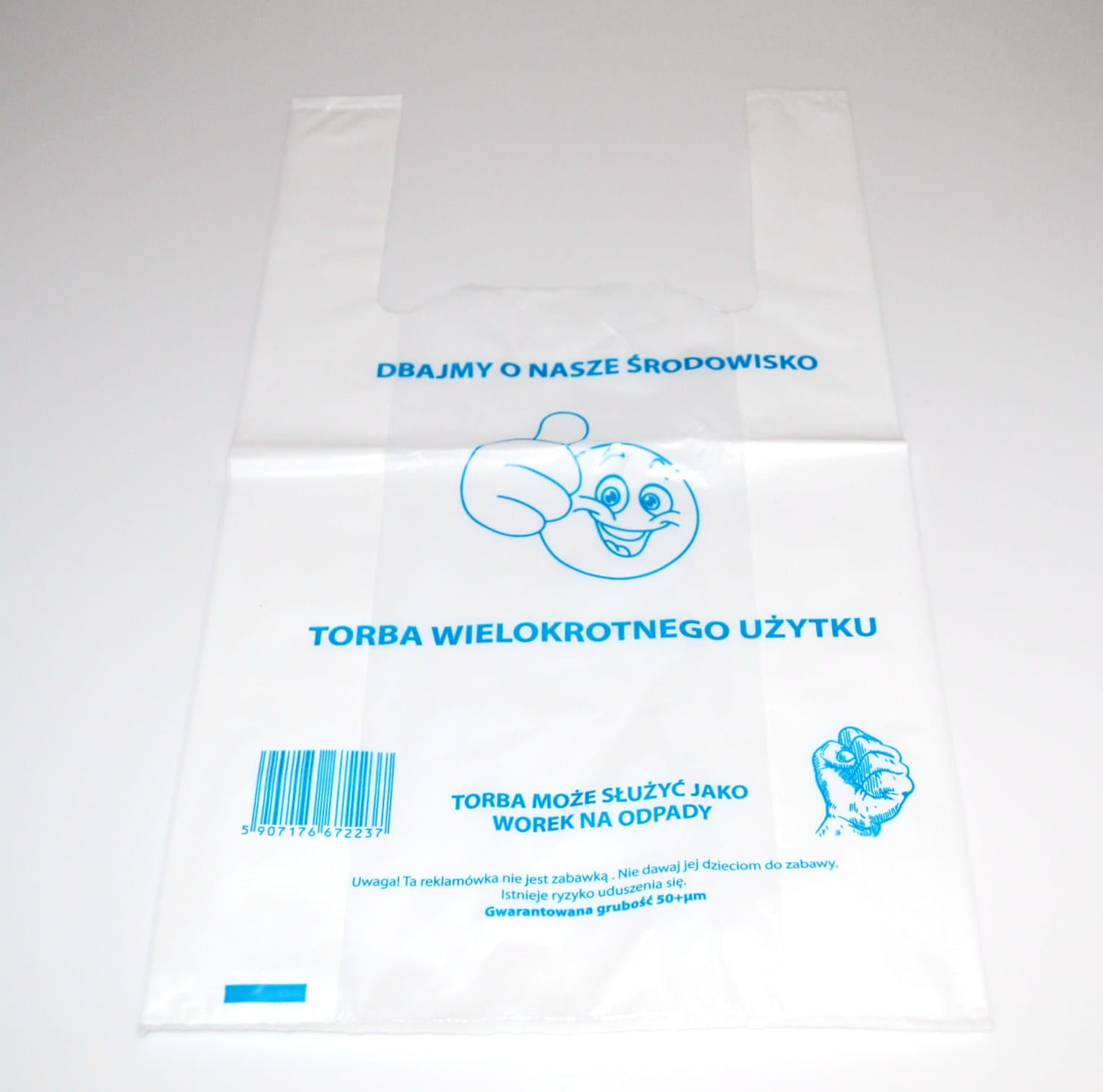 Reklamówka grubości 25 mikronów typu koszulka o wymiarach 25x45 cm biała z nadrukiem.