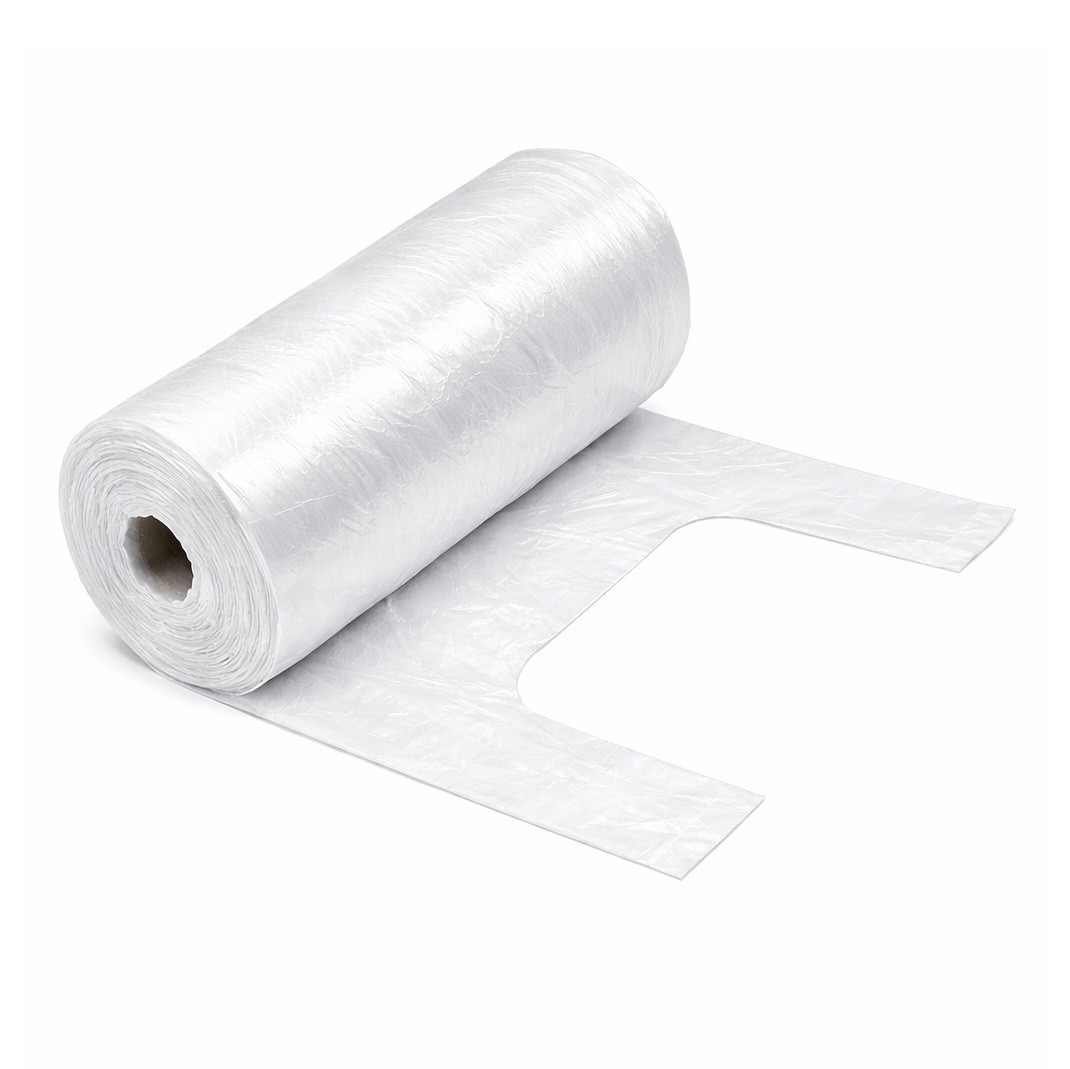 Reklamówka typu koszulka z folii hdpe o wymiarach 21 x 42 cm, nawijana na rolce po 350 szt. Grubość folii ok. 10 mic.