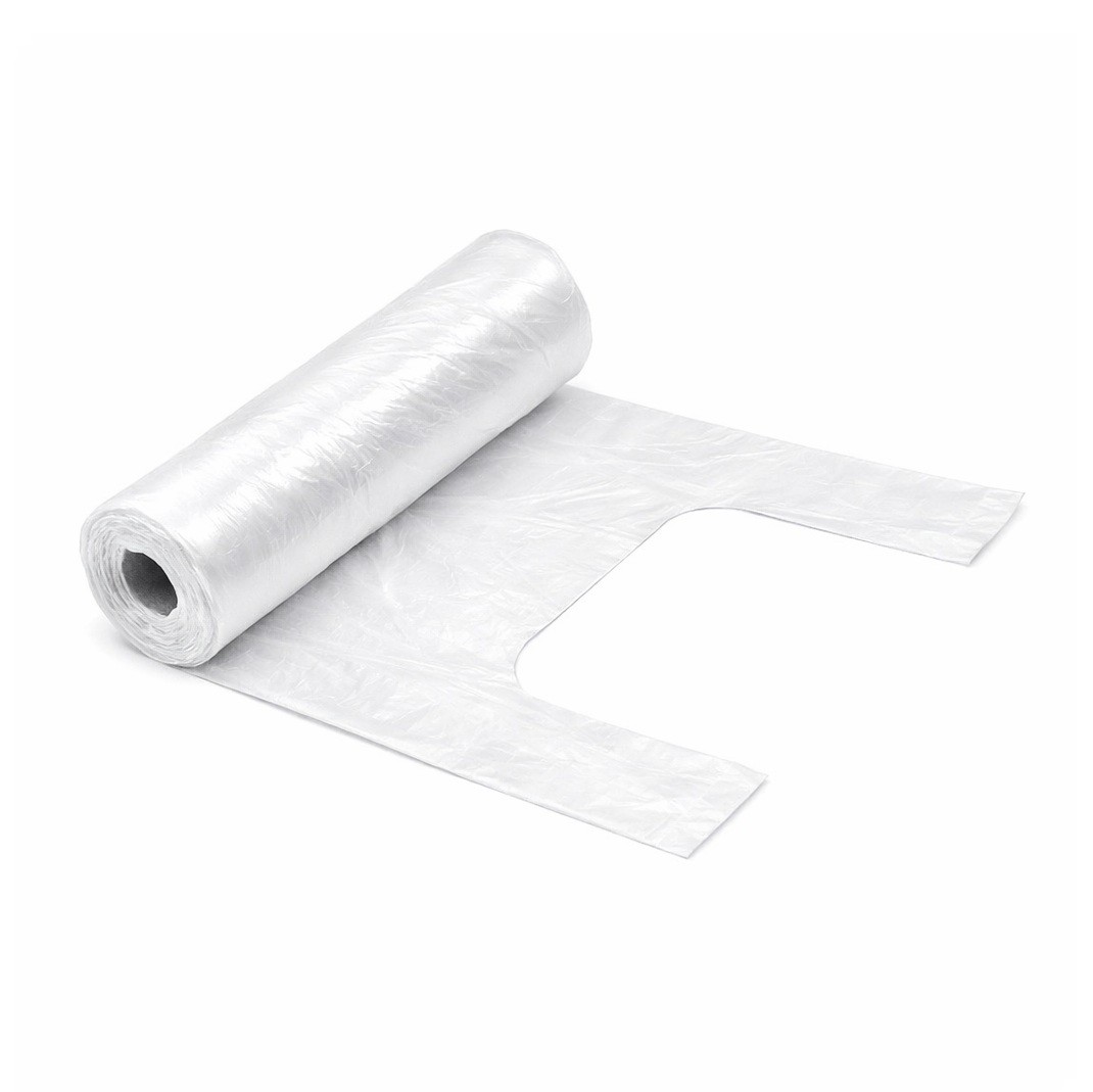 Reklamówka typu koszulka z folii hdpe o wymiarach 25 x 45 cm, nawijana na rolce po 100 szt. Grubość folii ok. 10 mic.