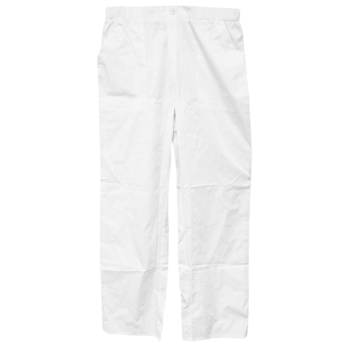 Spodnie męskie zapinane na zamek błyskawiczny i guzik. Spodnie posiadają wszytą w pasie gumką ściągającą i naszywane na zewnątrz kieszenie. Materiał: elanobawełna. Gramatura: 175 g/m2.