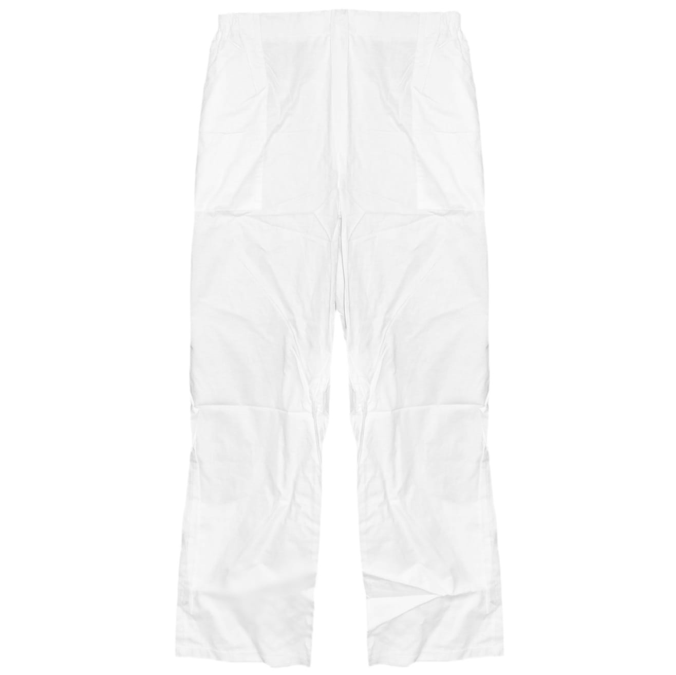 Spodnie męskie zapinane na guzik. Spodnie posiadają wszytą w pasie gumką ściągającą i kieszenie. Materiał: płótno. Gramatura: 160 g/m2.