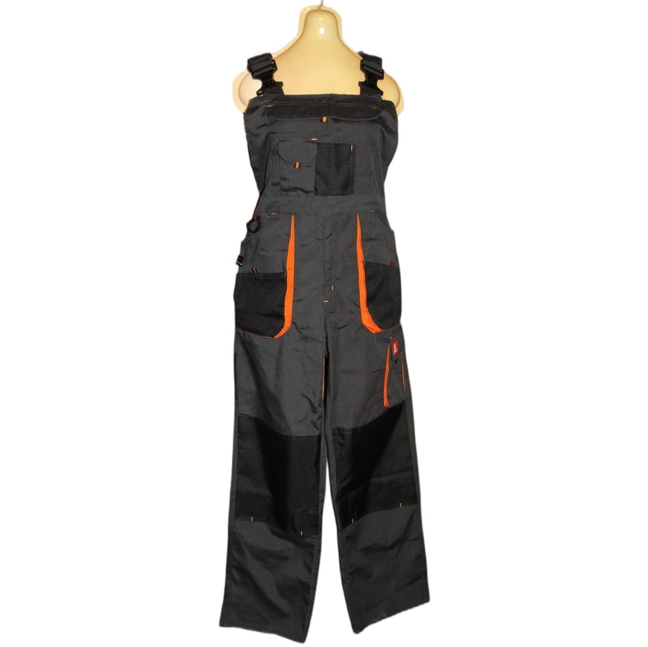 Solidne i wytrzymałe spodnie robocze męskie marki URGENT, utrzymane w popielatej kolorystyce z pomarańczowymi wstawkami. Materiał 65% poliester, 35% bawełna. Materiał wzmocnień: oxford+PU. Gramatura: 260g/m2.