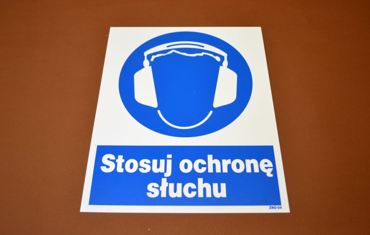 STOSUJ OCHRONĘ SŁUCHU - TABL. PCV NADRUK 22,5x28cm