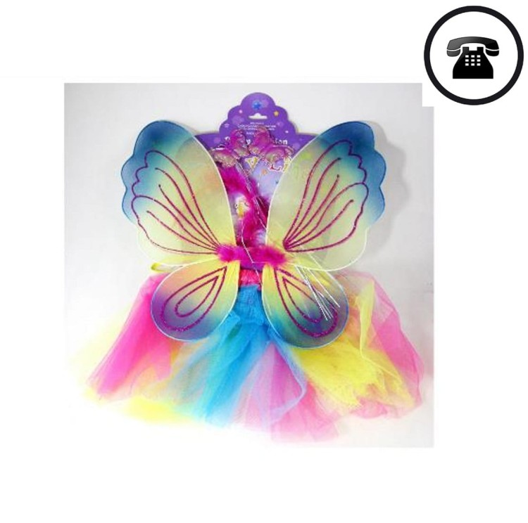 MOTYLEK KOLOROWY. Strój dziecięcy, dla dziewczynki, w skład zestawu wchodzą: spódniczka, skrzydełka, opaska z motylkami oraz różdżka, wzór dla dziewczynek w wieku 3 - 5 lat.