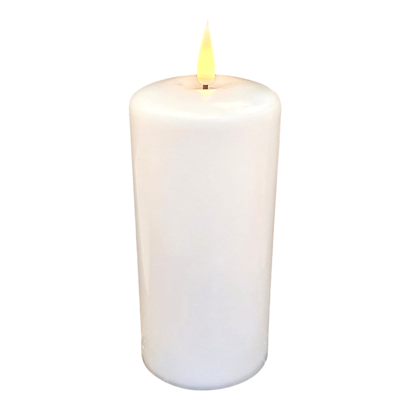 Świeca LED zasilana dwiema bateriami R6 (brak w zestawie). Wysokość 18 cm, średnica 7,3 cm.