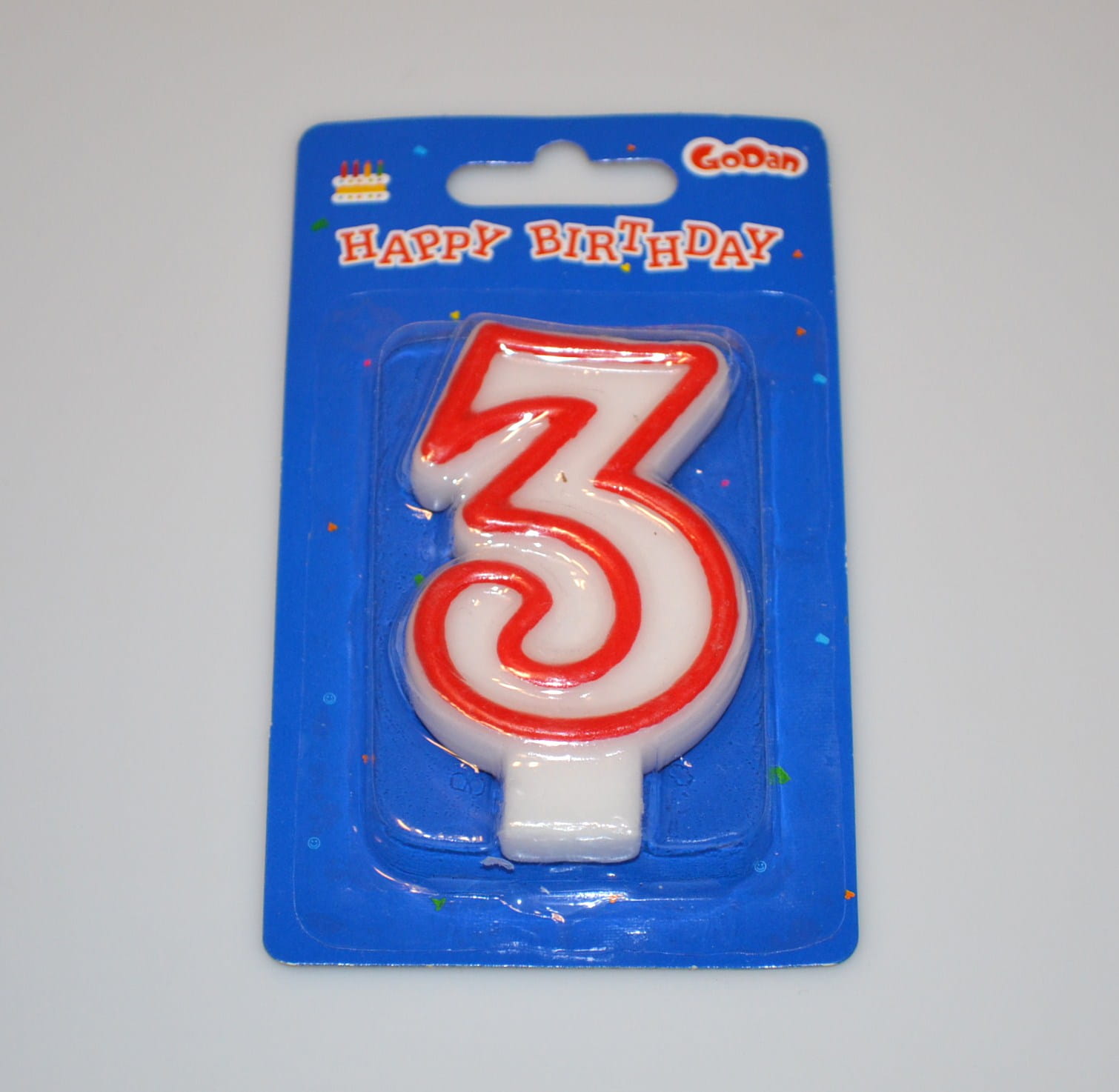 Świeczka urodzinowa cyferka biała z czeronym konturem, o wysokości 7 cm, pakowana na blistrze.