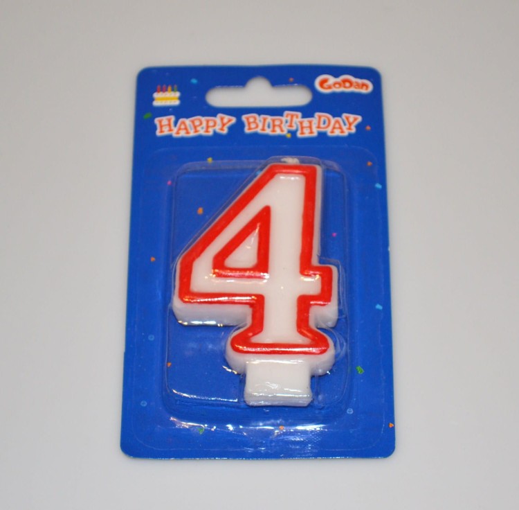 Świeczka urodzinowa cyferka biała z czeronym konturem, o wysokości 7 cm, pakowana na blistrze.