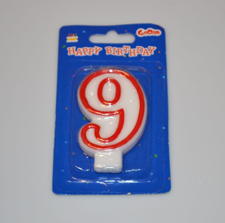 Świeczka urodzinowa cyferka biała z czeronym konturem, o wysokości 7 cm, pakowana na blistrze.
