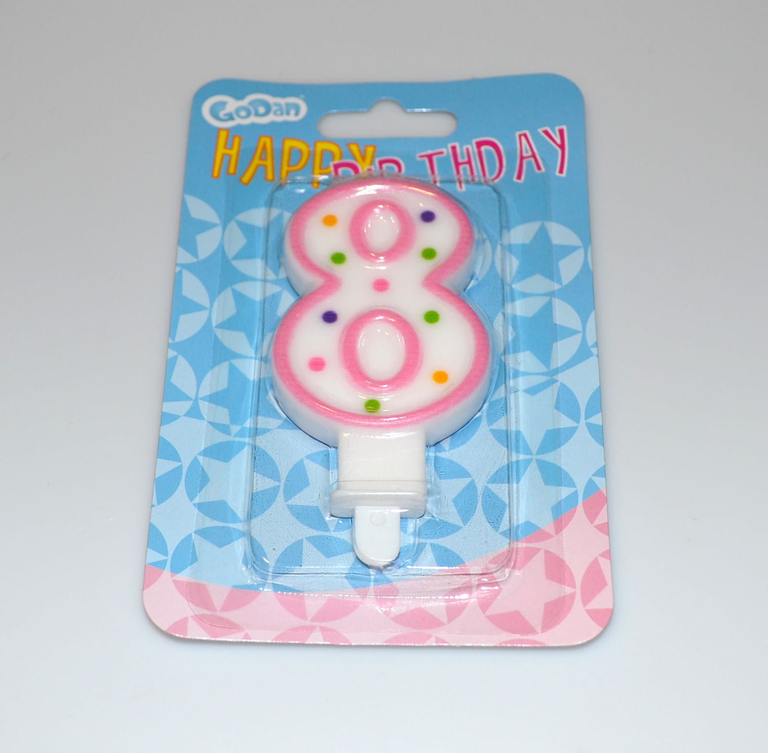 Świeczki urodzinowe cyferka w kolorowe groszki, o wysokości 7,5 cm, pakowana na blistrze.