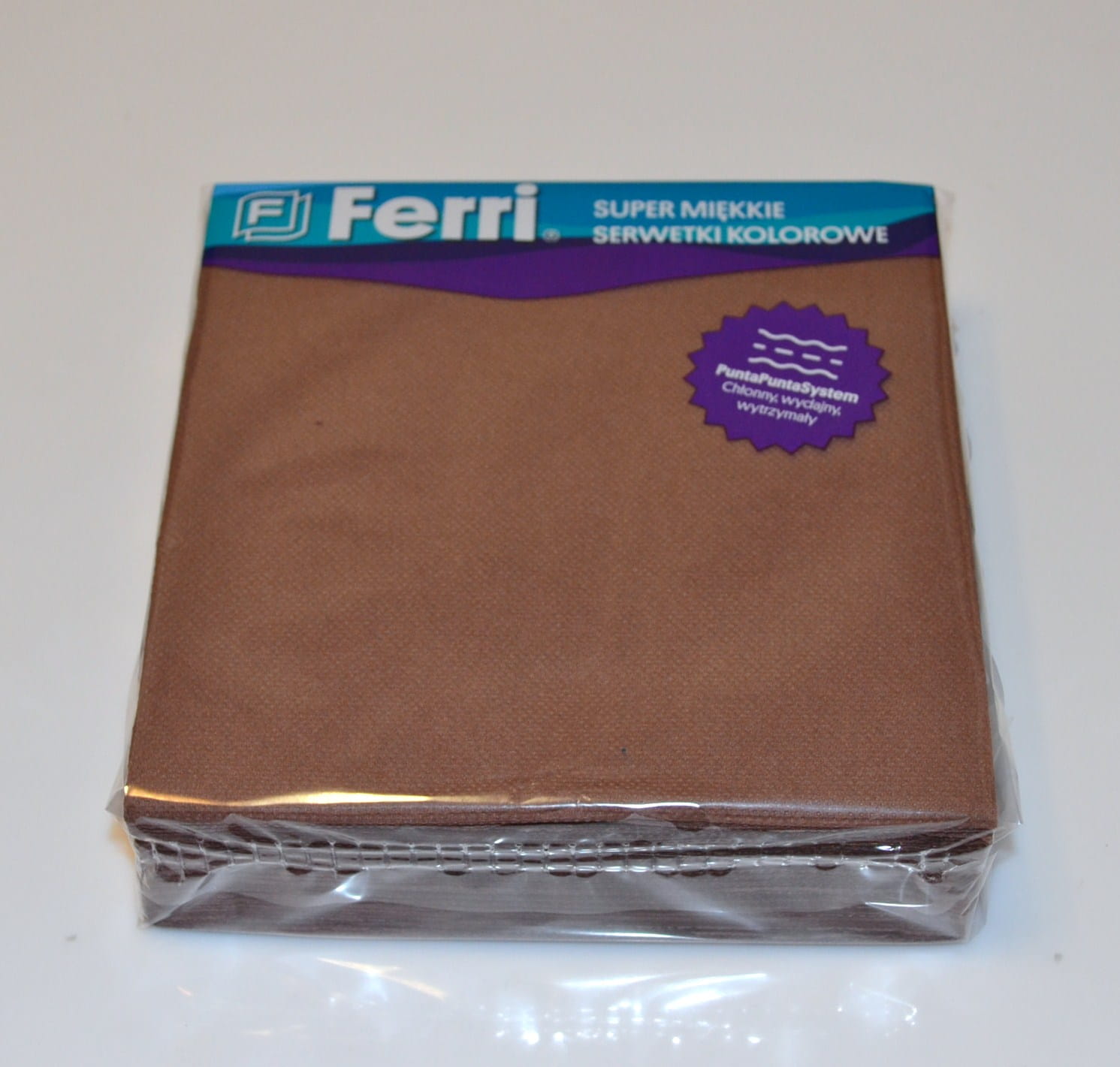 Serwetka o wymiarach 33x33 cm pakowana po 20 szt, dwuwarstwowa, z włoskiej celulozy, klejona, z systemem Punta Punta, bardzo chłonna i wytrzymała.