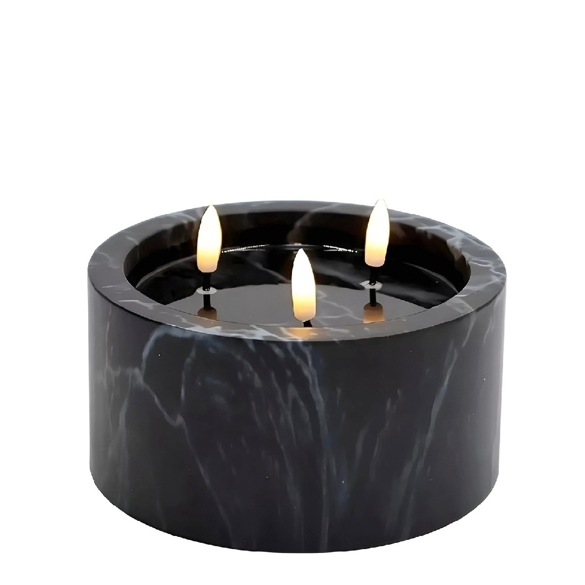Świeca LED z efektem marmuru potrójna czarna 8 x 15 cm
