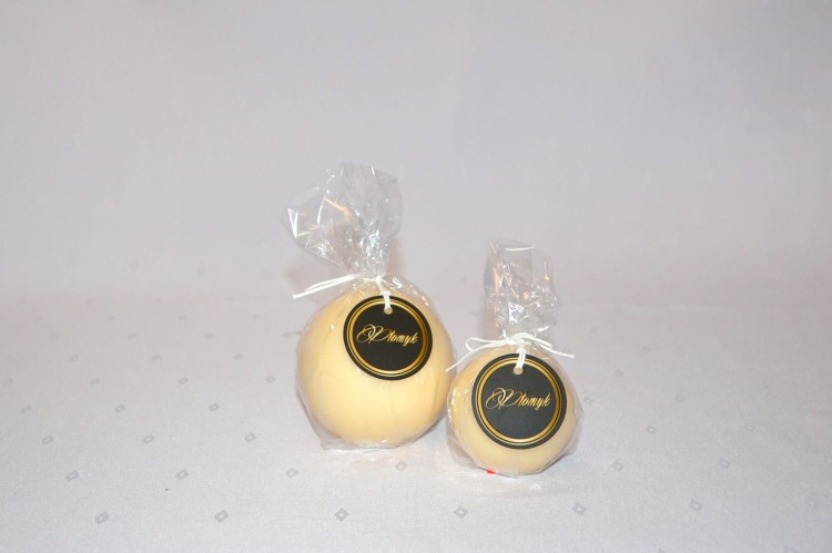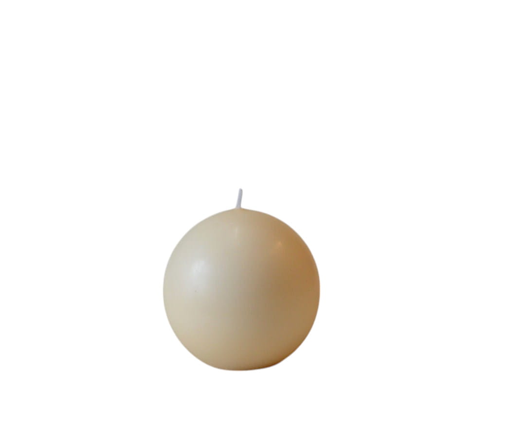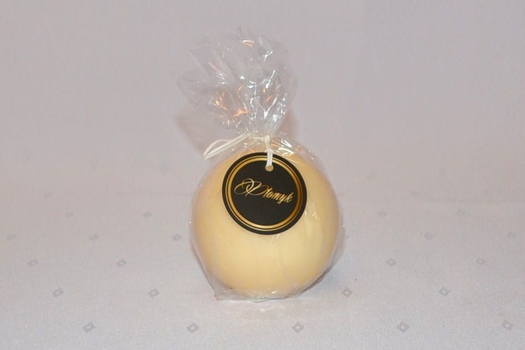 KOLOR KREMOWY. Świeca kula o średnicy 8 cm, matowa, niekapiąca, wypala się do środka, przybliżony czas palenia: 20 godzin, szeroka kolorystyka, produkt polski.