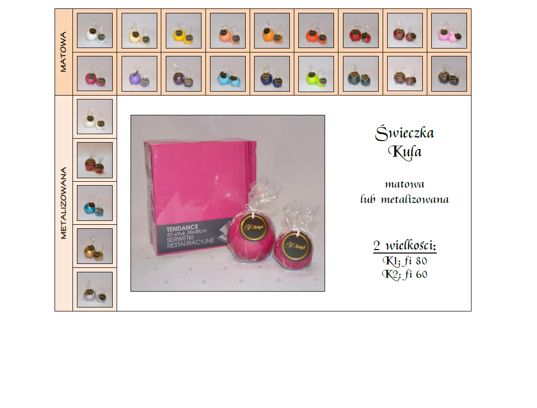 Polecamy również kule w innych rozmiarach, świece słupki, świece pływające oraz serwetki w tym samym kolorze!
