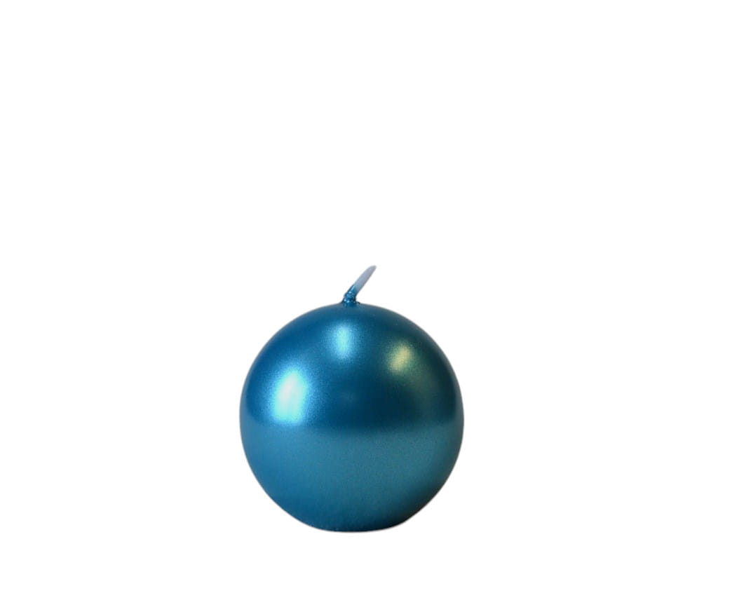 KOLOR LAZUROWY. Świeca kula o średnicy 8 cm, matalizowana, niekapiąca, wypala się do środka, przybliżony czas palenia: 20 godzin, szeroka kolorystyka, produkt polski.