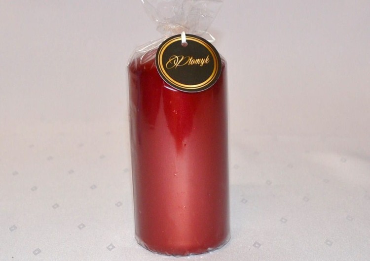 KOLOR CZERWONY. Świeca słupek o wysokości 150 cm i średnicy 7 cm, matalizowana, niekapiąca, wypala się do środka, przybliżony czas palenia: 75 godzin, szeroka kolorystyka, produkt polski.