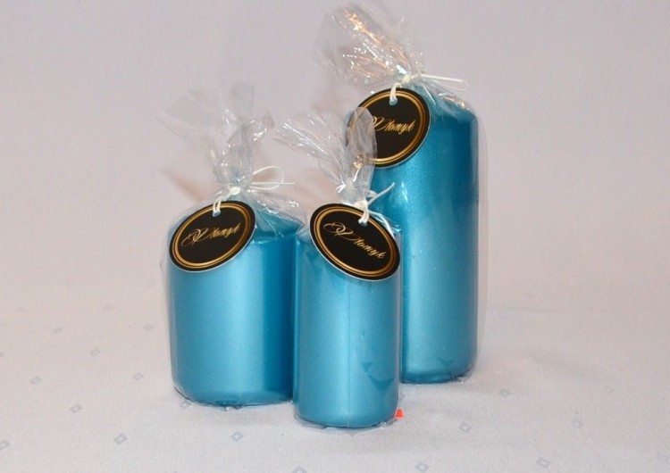 KOLOR LAZUROWY. Świeca słupek o wysokości 150 cm i średnicy 7 cm, matalizowana, niekapiąca, wypala się do środka, przybliżony czas palenia: 75 godzin, szeroka kolorystyka, produkt polski.