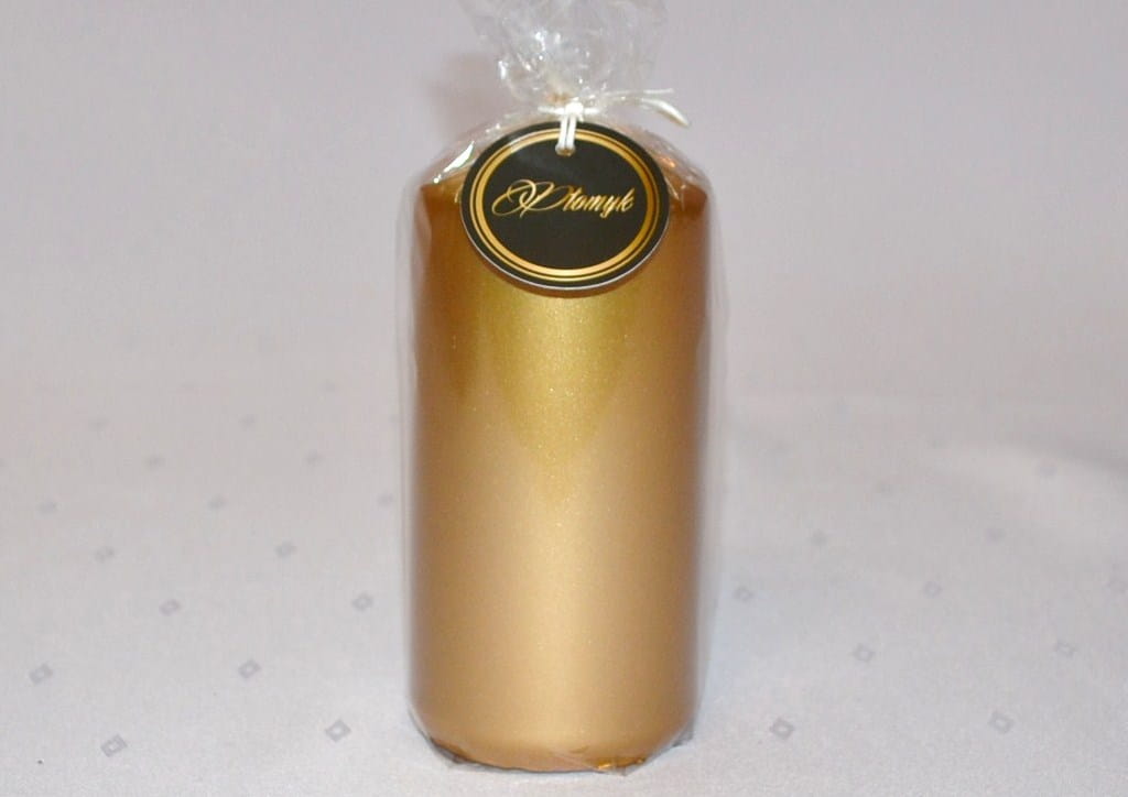 KOLOR ZŁOTY. Świeca słupek o wysokości 150 cm i średnicy 7 cm, matalizowana, niekapiąca, wypala się do środka, przybliżony czas palenia: 75 godzin, szeroka kolorystyka, produkt polski.