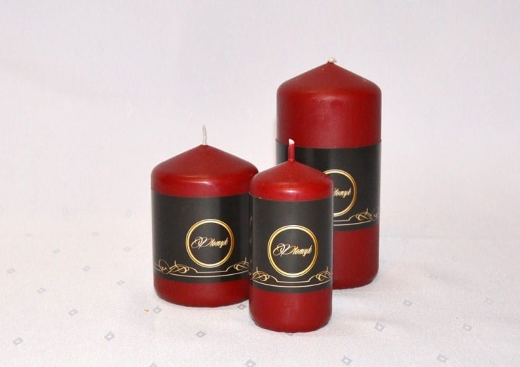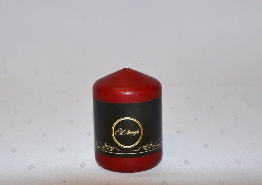 KOLOR BORDOWY. Świeca słupek o wysokości 10 cm i średnicy 7 cm, matowa, niekapiąca, wypala się do środka, przybliżony czas palenia: 50 godzin, szeroka kolorystyka, produkt polski.