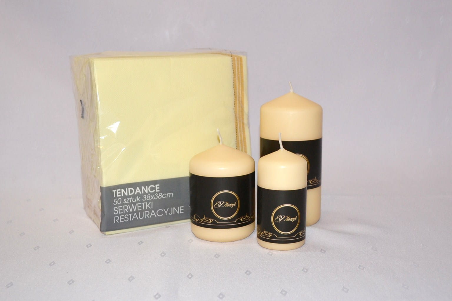 Polecamy również słupki w innych rozmiarach, świece kule, świece pływające oraz serwetki w tym samym kolorze!