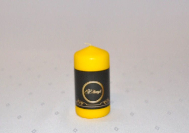 KOLOR ŻÓŁTY. Świeca słupek o wysokości 10 cm i średnicy 5 cm, matowa, niekapiąca, wypala się do środka, przybliżony czas palenia: 25 godzin, szeroka kolorystyka, produkt polski.