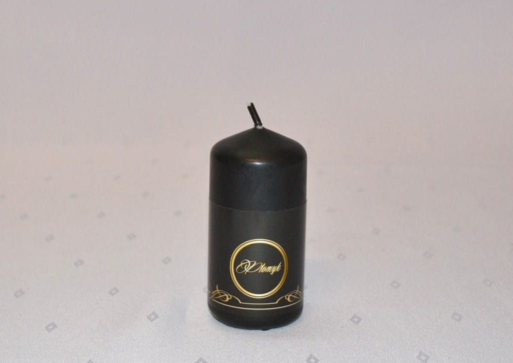 KOLOR CZARNY. Świeca słupek o wysokości 10 cm i średnicy 5 cm, matowa, niekapiąca, wypala się do środka, przybliżony czas palenia: 25 godzin, szeroka kolorystyka, produkt polski.