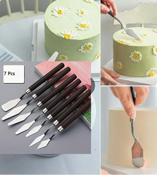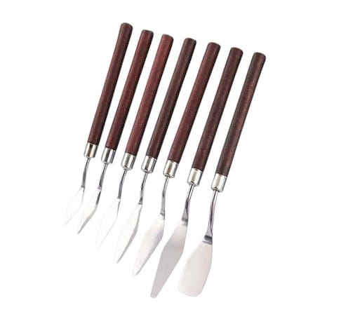 Szpatułki łopatki metalowe do modelingu, dekoracji, wyciskania, obróbki, nakładania w 7 różnych wielkościach drewniana rączka.