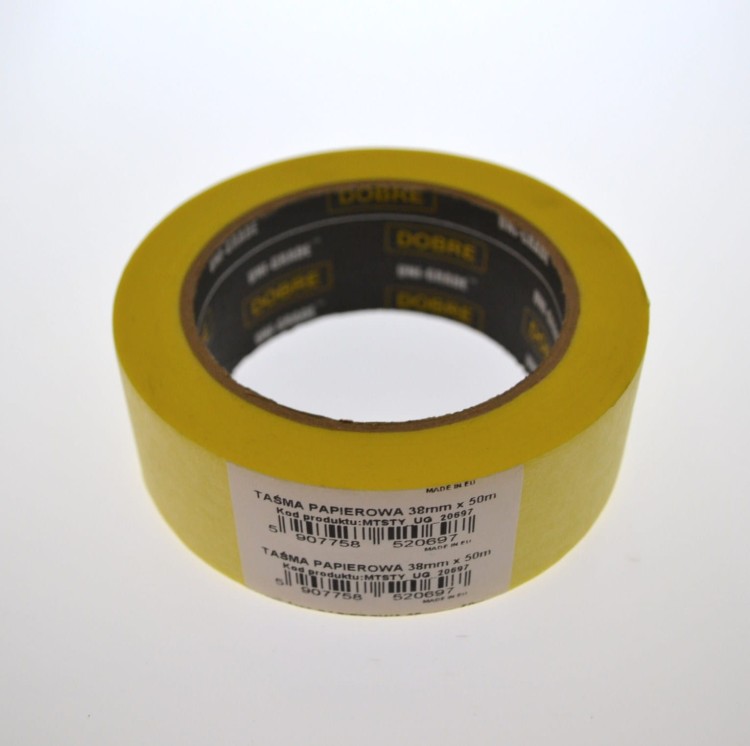 Taśma maskująca, papierowa o szerokości 38 mm i długości 50 yd. Uniwersalna, przeznaczona do zabezpieczania malowanych powierzchni, skutecznie chroni, nie zostawia śladów kleju, dobra przyczepność.