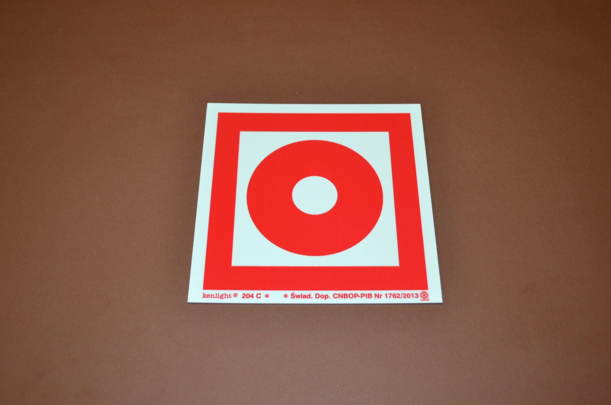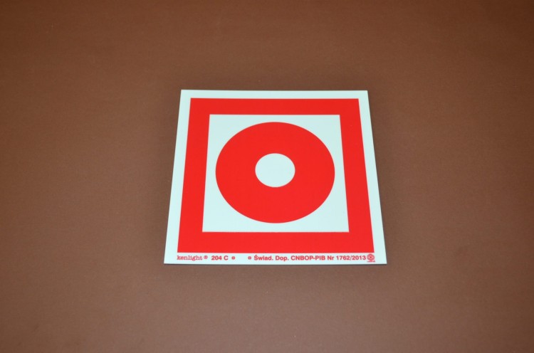 Tablica informacyjna PCV, przeciwpożarowa, świecąca w ciemności, o wymiarze 15 x 15 cm.