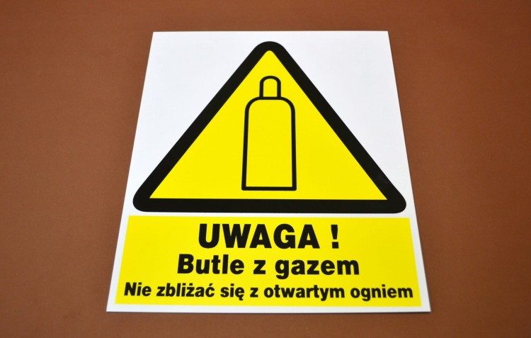 UWAGA BUTLE Z GAZEM - TABL. PCV NADRUK 22,5x28cm
