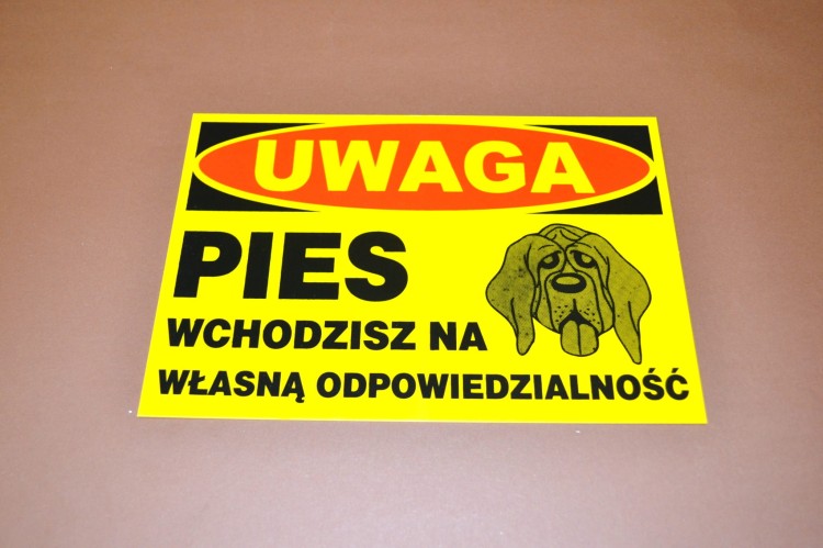 UWAGA PIES - TABLICA PCV NADRUK 17,5 x 25 cm