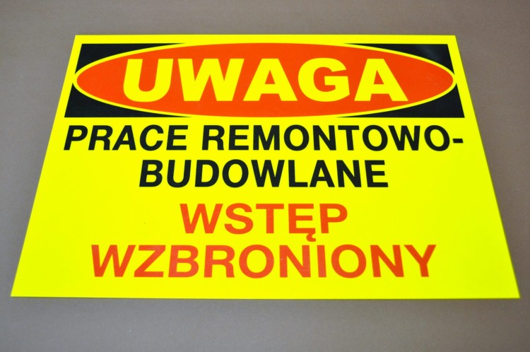 UWAGA PRACE REM.-BUD. - TABL. PCV NADRUK 25x35cm