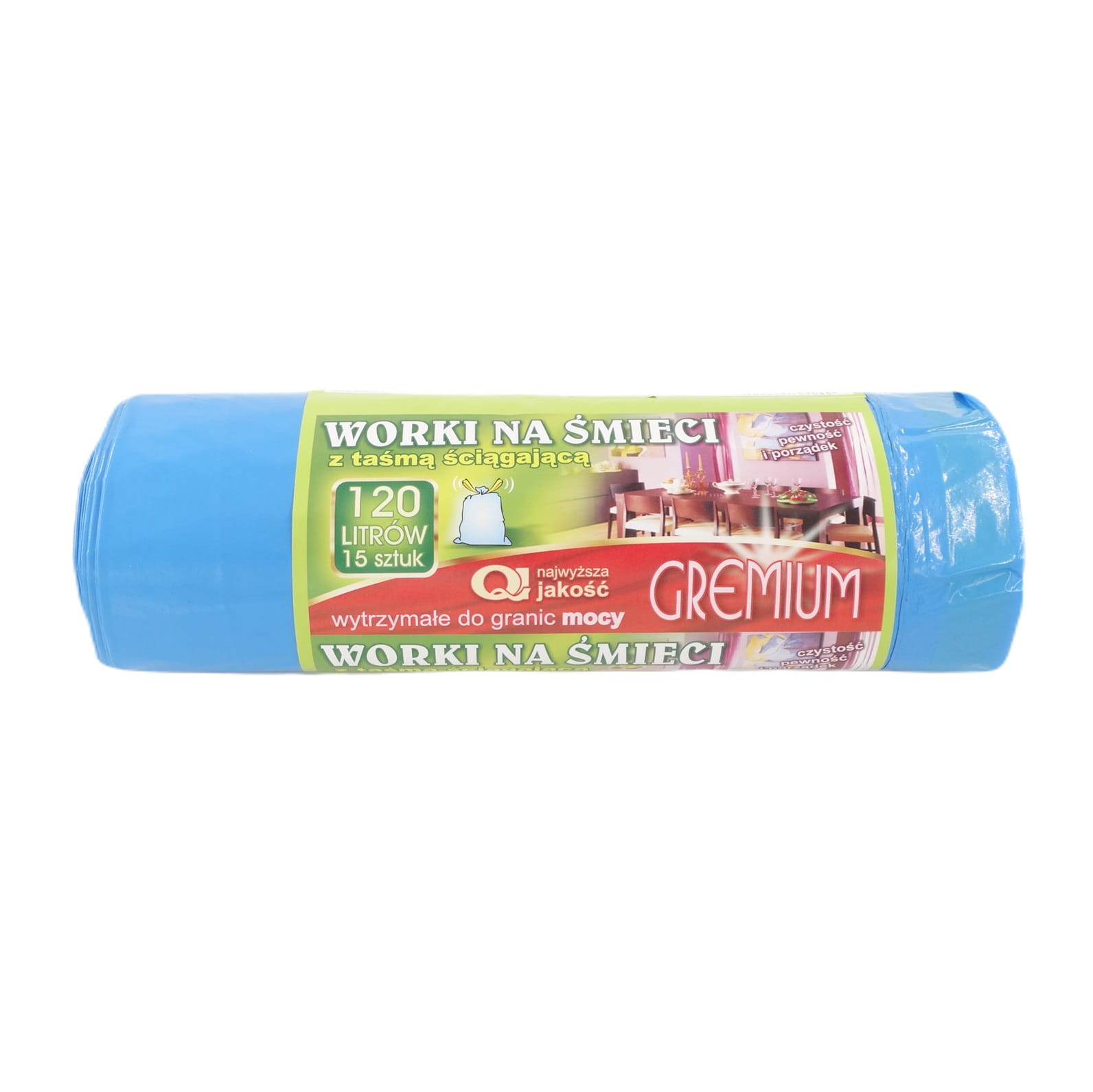 WORKI NA ŚMIECI GREMIUM Z TAŚMĄ 120 L 15 szt