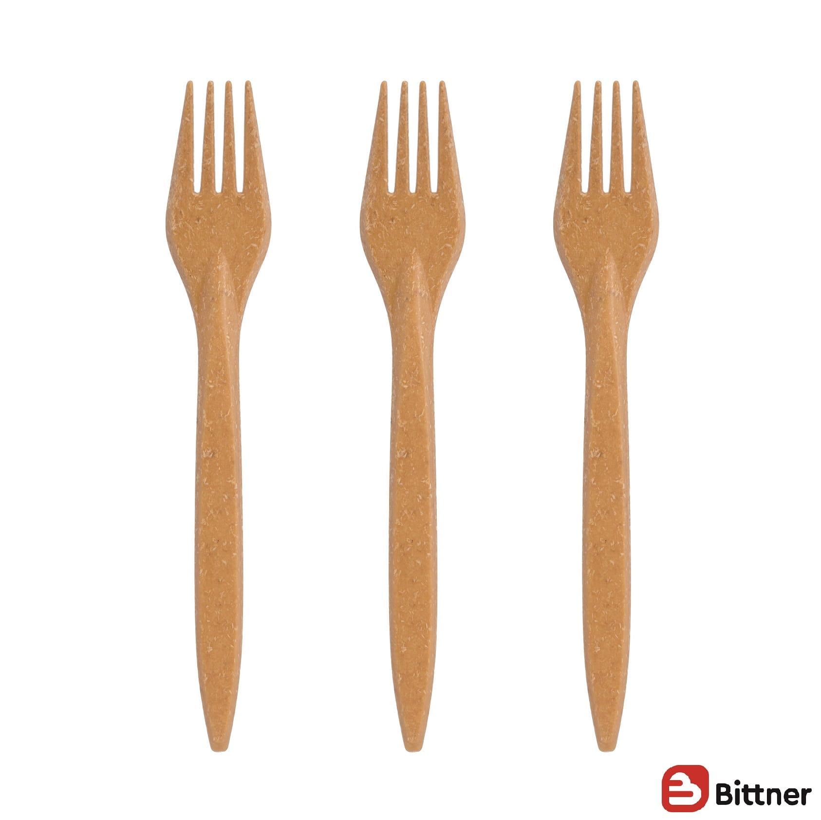 Widelec wielorazowy z możliwością mycia w zmywarce wykonany z tworzywa WPC (Wood Plastic Composite) tj. polimeru z 40% dodatkiem produktu pochodzenia naturalnego sztywne i wytrzymałe do 100 st C