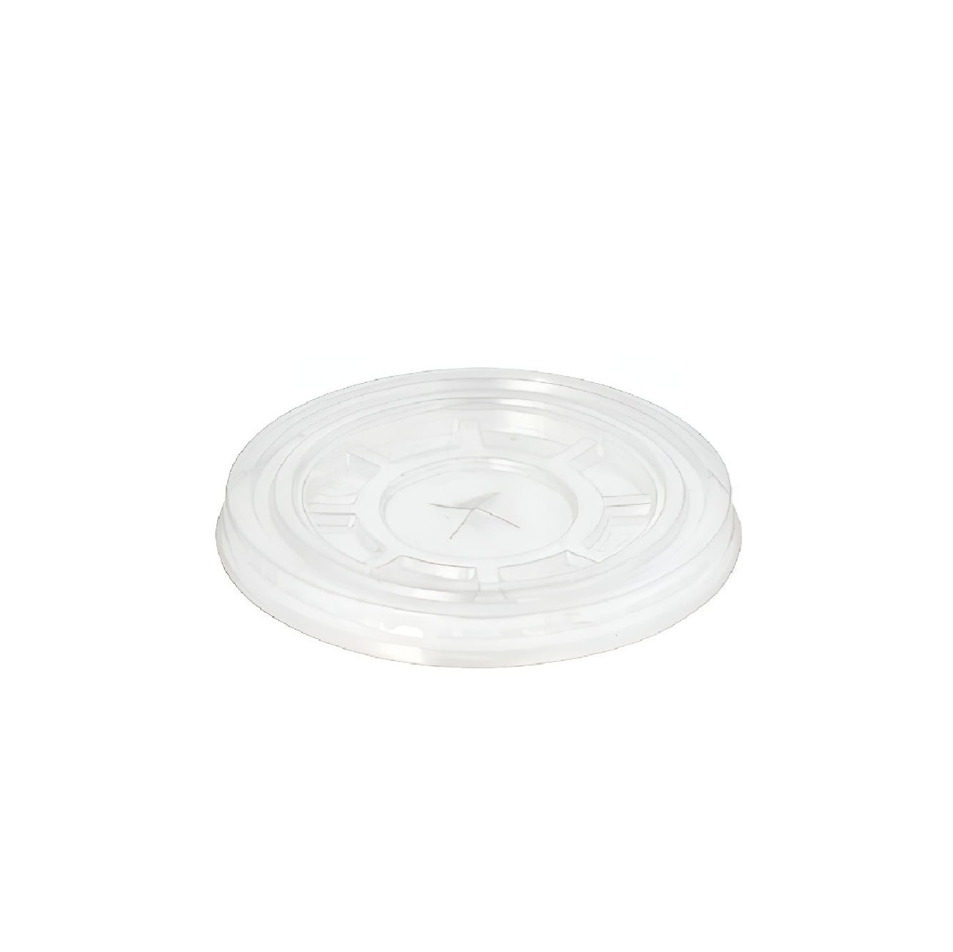 Wieczko płaskie, z nacięciem na słomkę, pasujące do kubków PET o średnicy 95 mm, z wysokoprzeźroczystego tworzywa PET.