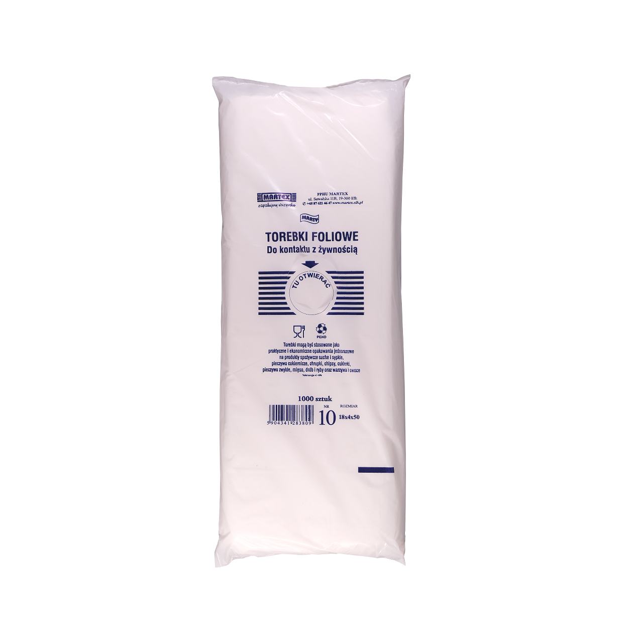 Woreczki foliowe z folii hdpe o wymiarach 18x4x50, atestowane, jednorazowego użytku, doskonałe do pakowania pieczywa, mięsa, drobiu, warzyw i owoców, art.sypkich itp.