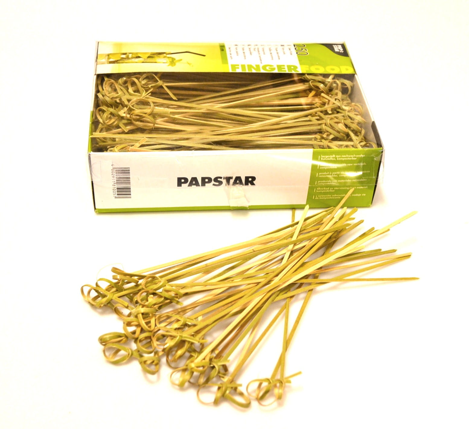 Wykałaczki bankietowe bambusowe z petelką o długości 18 cm z zaostrzona końcówką.Pakowane po 250 szt. w kartoniku. Idealnie nadają się do koreczków, przystawek itp.