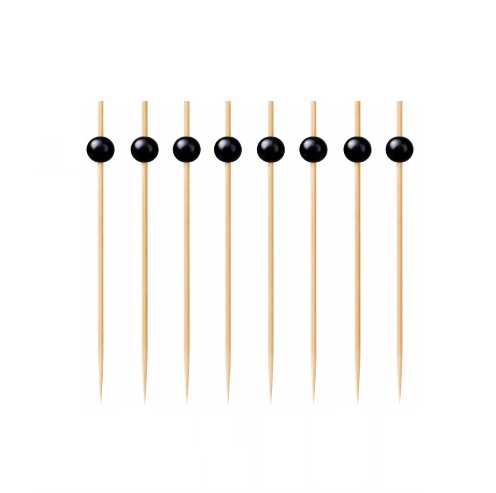 Wykałaczki bankietowe drewniane z czarną perłą o długości 12 cm z zaostrzonymi końcówkami.Pakowane po 250 szt. w kartoniku. Idealnie nadają się do koreczków, przystawek itp.