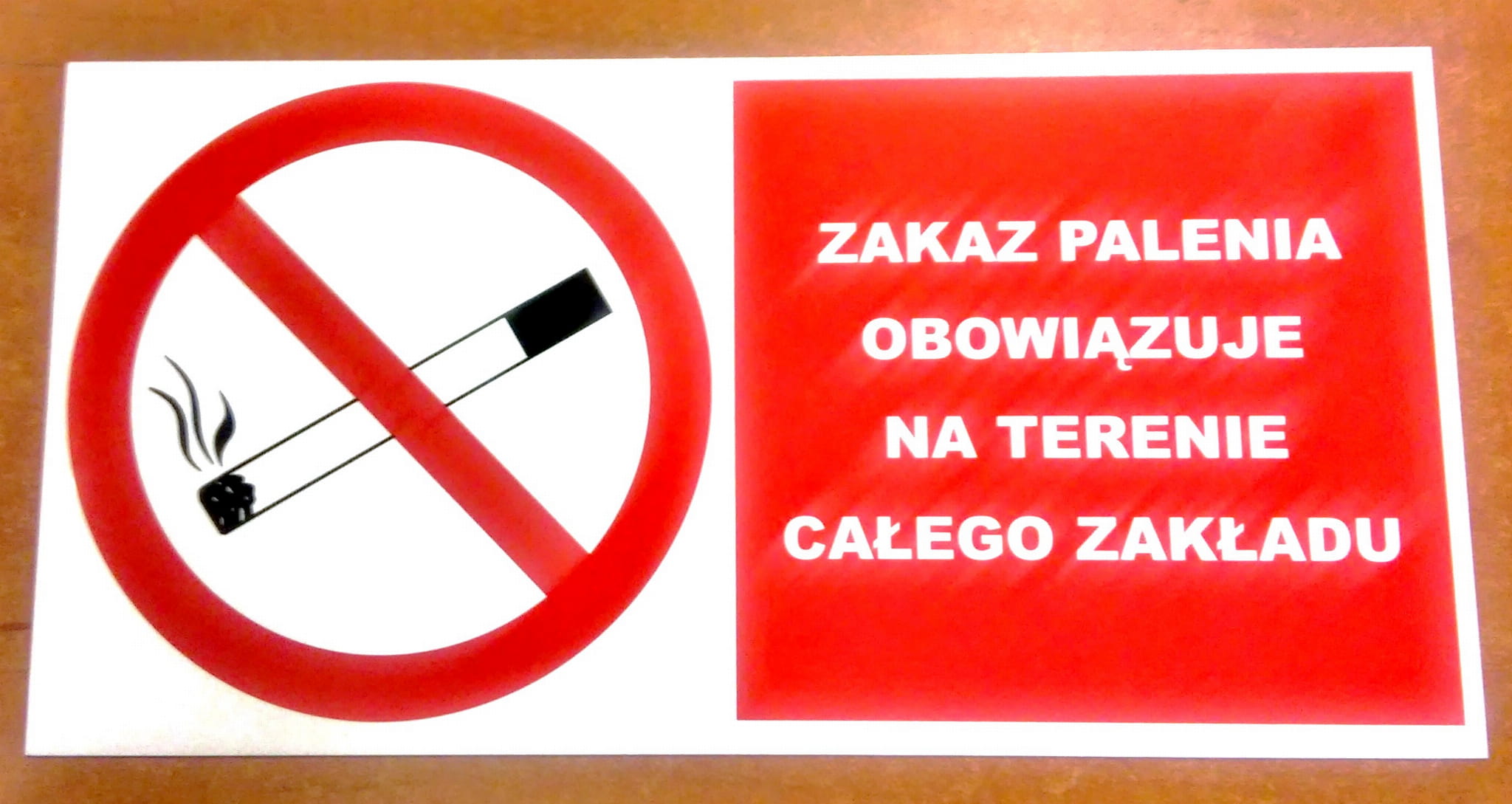 ZAKAZ PALENIA OBOWIĄZUJE NA TERENIE CAŁEGO ZAKŁADU.