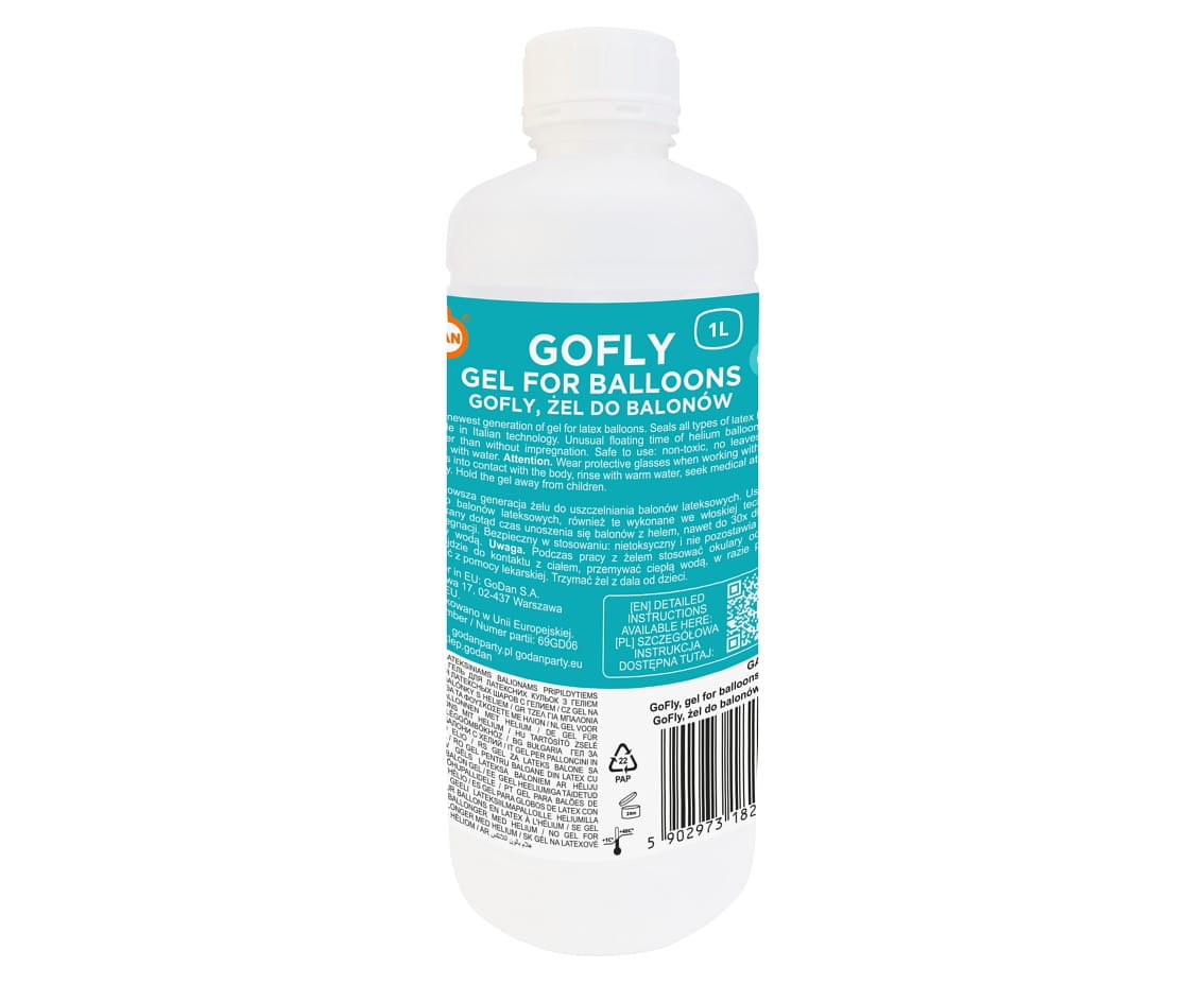 Żel uszczelniający do balonów lateksowych, pozwala na wydłużenie lotności balonów napompowanych helem nawet do kilkunastu dni. Butelka o pojemności1 litra wystarcza na napompowanie około 170 szt balonów.